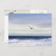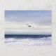 Uma gaivota acima das ondas de espuma em uma praia do Outer Banks.