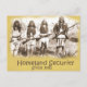 Mostrada é uma fotografia do chefe do Apache, Gerônimo, e alguns de seus bravos ramificando suas espingardas e o texto, "Segurança Interna desde 1492". A fotografia é uma imagem dominio público fornecida pelo Arquivo Nacional.