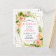 Este cartão postal de chá de panela divertido e caprichoso apresenta flores cor d'água rosa e laranja hibiscus, folhas monstera e folhagem numa moldura geométrica dourada. O texto combina o script manuscrito e as fontes serif para uma aparência na moda e moderna. Isto é perfeito para um primavera ou chá de panela rústico de verão.