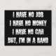 Não tenho emprego, não tenho dinheiro, não tenho carro, mas estou numa banda. Preto & Branco. Impressos em t-shirts, capuzes, autocolantes, artigos de festa, coleções e muito mais.
