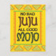 Cartão divertido para mostrar encorajamento e apoio para alguém que está doente ou passando por um momento difícil ou enfrentando um desafio. Adicione um pouco de humor com este ditado divertido "Sem Juju Ruim, Todo Mojo Bom" em cores vibrantes com um motivo de arte tribal. O texto interno diz "Você Consegue" mas pode ser editado para a sua escolha de palavras. Este cartão pode ser usado como cartão de melhoras, cartão de empatia para alguém que enfrenta uma doença grave ou cirurgia, ou cartão de encorajamento para qualquer desafio ou situação difícil.