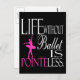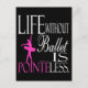 Esta design com um ditado que diz "A vida sem balé é inútil" apresenta um dançarino de balé em um tutu, parado em cima da palavra "ponteiro", realçado em rosa. Uma ideia de presente de excelente para o estudante balé, professor ou sua família. www.Gifts4Dancers.com
