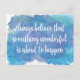 Sempre acredite que algo maravilhoso está prestes a acontecer uma citação inspiradora favorita com uma mensagem positiva e um fundo azul de cor d'água.