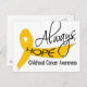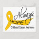 Veja todos os designs exclusivos de conscientização do Cancer da infância TODOS EXIBIDOS EM UMA PÁGINA visitando a Seção Cancer da infância do nosso Compro Zazzle, Quando se trata de uma cura para o Cancer da infância, devemos Sempre Esperar. Expresse esse sentimento inspirador para aqueles ao seu redor enquanto compartilhava a importante mensagem de conscientização do Cancer da infância com t-shirts, roupa, botões e presentes que contêm texto fantástico e uma faixa de reconhecimento do Cancer da infância dourada, dourada e embebida em 'ouro'. Como sobreviventes de câncer, cônjuges e ativistas de conscientização ávidos, temos o prazer de contribuir para muitas organizações de pesquisa médica, assim como para o resgate de animais e para o salvamento de Darfur, e pedem que vocês pensem em nós primeiro para todas as suas necessidades de conscientização e apoio ao Cancer infantil.