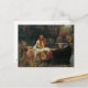 Pintura detalhada e antiga de arte da Senhora de Shalott (1888) na água em um barco-ornamentado. Senhora de Shalott vestida com um vestido branco de cheio. Arte do artista inglês John William Waterhouse.