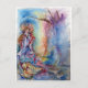 Colorida, caprichosa, romântica, pintura contemporânea simbolista em aquarela em cores azul suave, rosa, vermelho, roxo, violeta, branco para uma lenda celta espiritual e mística por Alessandro Lumini 1989. Este design legal e artístico também é um presente lindo para ocasiões especiais, aniversários, casamentos, Natal, feriados, Dia dos Namorados, temporada de Mardi Gras (Terça-feira Gorda). ----Vivien, esta misteriosa mulher deu a Arthur sua espada, Excalibur. Ela roubou Lancelot quando ele era criança e o curou quando enlouqueceu. Ela pode ser uma divindade celta de um lago em sua origem, talvez do mesmo tipo que as Gwagged Annwn - fadas do lago no folclore galês moderno. Vivien pode muito bem ter sido a Dama do Lago nas Lendas e histórias Arturianas. Ela, às