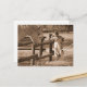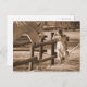 Cartão postal com a foto sépia / preto e branco de um cavalo e do seu filho.