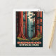 Experimente a majestosa atração do Parque Nacional de Sequoias, na Califórnia Norte, com nosso cartão-postal lindamente trabalhado, com uma representação única, em estilo plano e digital, de árvores ruivas torrenciais. Perfeito tanto para entusiastas da natureza quanto para amantes da arte, este cartão-postal captura a beleza serena das florestas vermelhas.