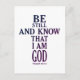 fique quieto e saiba que eu sou Deus | Deus é o amor | amor nunca termina | Ele diz, "Fique quieto e saiba que sou Deus; serei exaltado entre as nações, serei exaltado na terra." Salmo 46:10. | Esta frase deriva da palavra hebraica rapha que significa "ser fraco, largar, libertar". Essencialmente, significa rendição | design de tipografia colorida em forma de cruz que pop realmente sobre fundo branco brilhante | fé cristã | crê | amor | cruz | diversão cômica, fé recheada em casa cristã e acessórios de moda |