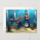 3D digitais rendem de uma sereia e de um golfinho bonitos no fundo azul do oceano da fantasia