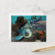 Uma cena mágica debaixo do mar, uma sereia de cabelo aqua sentada numa rocha saúda um golfinho amigável. Este seria um presente excelente para qualquer um que ama as sereias.