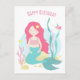 Cartão Postal Sereia Fofa Rosa e Hortelã Aniversário para Men