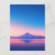 This ethereal postcard captures the breathtaking serenity of a high-altitude sanctuary at dusk. A majestic, snow-capped mountain peak stands as the focal point, perfectly mirrored in the glass-like surface of a tranquil lake below. The sky is a stunning masterpiece of color, transitioning from a soft, glowing peach and pink at the horizon into a clear, deep azure blue punctuated by the first shimmering stars of evening. Delicate, wispy pink clouds cling to the mountain's base, adding to the dreamlike atmosphere. With its calming palette of violet, rose, and sky blue, this piece evokes a sense of profound peace. This postcard is an ideal choice for sending a restful greeting, a thoughtful "thinking of you" note, or as a beautiful decorative keepsake for nature lovers.