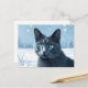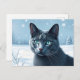 Cartão Postal Sereno Gato Azul Russo em um Tranquilo Inverno Nev