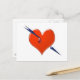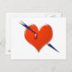 Um coração vermelho perfurado por uma seta com uma gota de sangue de solteiro. Um postal emocional que envia uma mensagem inconfundível. Diga a alguém como se sente sobre eles.