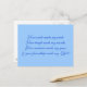 Um cartão poste azul claro com palavras azuis escuras. Cita um poema amoroso.