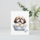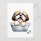 Uma bela ilustração com aquarela de cão de um feliz cão Shih Tzu numa banheira. Excelente para amantes de cães.