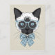 Este design apresenta um gato siamês vestido com um par de óculos azuis e gravata arco marcada.