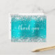 Cartão Postal Silver Glitter Aqua Blue Sweet 16 Corações Obrigad