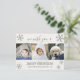 Adicione 3 fotos à frente deste cartão postal Feliz Natal, onde uma dispersão de falso falso flocos de neve com brilho prateado adiciona charme às suas mensagens de Natal. Um fundo branco sujo e madeira de cinza é o pano de fundo para uma mistura de fontes para um sentimento de feriado moderno. Todo o texto é fácil de personalizar, de seus nomes para baixo caso Feliz Natal e "nós desejamos a você" ambos em um roteiro manuscrito de cinza com sutis sombras pretas para o interesse por esses cartões postais de feriado. Basta carregar suas três fotos favoritas nesses cartões postais de fotos prateados com flocos de neve para uma maneira única de enviar Cartões de natal para a família e amigos. Os melhores cartões postais fotográficos de Natal são fáceis de personalizar e esses cartões postais de modelo com floco de neve prateado no templo do inverno podem ser personalizados em um salto.