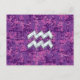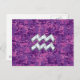 Cartão Postal Símbolo Aquarius Zodiac na Camuflagem Digital Rosa