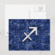 Um símbolo do zodíaco Sagitário prateado brilhante em uma vibrante textura de camuflagem digital azul-marinho. Um design urbano moderno para uma ótima ideia de presente de aniversário personalizado. Use o link "Pergunte ao Designer" para entrar em contato conosco com suas solicitações especiais de design ou para obter ajuda com suas necessidades de personalização.