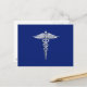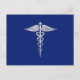 Cartão Postal Símbolo Médico de Cromo Silver Caduceus em Azul Ma