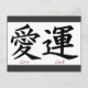 Cartão Postal Símbolos de Amor e Sorte Kanji