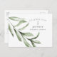 Cartão postal de Celebração de Vida. Detalhes no verso. Perda de um ente querido com celebração. Compartilhe Memórias. Personalize. Horizontal. Folhagem. Fundo branco. Haste única.