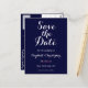 Cartão Postal Simples e Elegante Casamento Azul-Marinho Save the