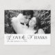 Apresentamos nosso cartão postal de agradecimento de casamento "Simple Elegant Text and Photo". Esses cartões-postais elegantes e sofisticados são a maneira perfeita de expressar sua gratidão aos convidados após o casamento. Com um design limpo e elegante, com espaço para uma bela foto do seu dia especial e uma mensagem de agradecimento sincera, esses cartões-postais combinam simplicidade e sofisticação. Feitos de materiais de alta qualidade, garantem durabilidade e acabamento polido.