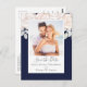 Cartão Postal Simples Elegante Marinho Floral Azul Blush Rose Bo