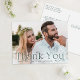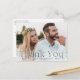 Cartões-postais de agradecimento de casamento elegantes com sua foto de casamento horizontal com sangria total e "Obrigado" em letras verdes. Personalize esses cartões-postais de agradecimento de foto modernos com seu nome para um toque elegante e pessoal. O verso do cartão-postal de agradecimento de foto de casamento inclui espaço para seu endereço de retorno e uma mensagem personalizada, facilitando a expressão de sua gratidão aos convidados. Perfeito para exibir sua foto de casamento favorita enquanto envia um sincero agradecimento.