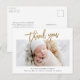 Cartão Postal Simples Fotografia de Bebê em Script Dourado Obrig