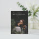 Este casamento de fotos moderno minimalista salve a data do cartão postal modelo tem um olhar simples e limpo com seus nomes na parte inferior de uma fonte de script. Você pode preferir outro estilo de fonte, script ou outro, para seus nomes ou outra parte do texto. Você também pode alterar o tamanho e a cor do texto. Observe, no entanto, que quando você edita este cartão para incluir suas próprias informações, alguns campos de texto, como a data e a localização do casamento, são os mesmos tanto para frente quanto para trás, de modo que quando você muda isso de um lado, ele também será alterado automaticamente do outro lado. Isso limita sua capacidade de excluir determinado texto ou alterar a fonte, etc., pois a alteração entrará em vigor para esse campo de texto em ambos os lados do cartão, o que você talvez não queira. Seus nomes, no entanto, podem ser editados separadamente em cada lado, pois cada lado dos nomes tem um campo de texto distinto no modo de edição. Lembre-se também de reparar e alterar as informações do endereço de devolução do exemplo para suas próprias informações, pois ele é pequeno e está na parte inferior da parte traseira do cartão, facilmente ignorado! Você pode remover as linhas para as informações do destinatário e/ou o texto 'entregar para', se quiser uma aparência mais simples.