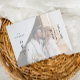 Casamento de dois fotos em monograma preto, exceto o cartão postal do anúncio. Um monograma preto vertical fica no lado esquerdo do anúncio enquadrado com os nomes da noiva e do noivo. Salve a data em que o local e a data estão simplesmente localizados no lado direito da placa. Compre esta coleção de casamento moderna para coordenar convites de casamento e opções adicionais de cores de tendências.