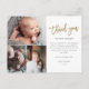 Este Cartões de agradecimentos Simple Script 3 Photo Collage Baby apresenta um obrigado de caligrafia manuscrito de ouro moderno e mensagem pessoal na frente. Clique no botão personalizar para personalizar este design com suas fotos e detalhes.