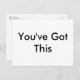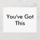 Mensagem simples e simples: "Você tem isso". A mensagem pode ser alterada para qualquer coisa que você quiser. Usando uma fonte sem escutas, sans-serif em preto sobre branco, você também pode mudar fontes e cores. Faça seu próprio postal. Ou enviá-lo como está, por um efeito subestimado.