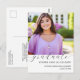Agradeça à sua família e amigos com estilo com nosso cartão postal de agradecimento de formatura escolar em casa Simply Elegant Photo! Trazendo um toque sofisticado e atraente, este design impressionante com um belo fundo floral roxo é uma maneira de compartilhar seus agradecimentos pelo papel deles em seu grande marco. Certifique-se de incluir seus detalhes pessoais e, em seguida, use nossa mensagem no verso ou substitua pela sua própria. Procure por peças complementares e mais variações e ideias de formatura em nossa Coleção de Ensino em Casa ou em nossa Coleção de Formatura