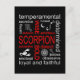 Legal etiqueta design de nuvem listando alguns termos de sinal de zodiac com traços de personalidade positiva e negativa Scorpion.