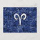 Cartão Postal Sinal do Zodíaco Áries em Camuflagem Digital Azul-