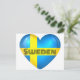 bandeira nacional suecia num recorte em forma de coração com sobreposição de texto em estilo retrô