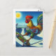 Cartão Postal Skateboard Colorida Rooster