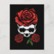 Cartão Postal Skeleton Skull com Rosas Morte Floral Romântica