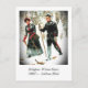 Skilopere ou cena de inverno. Belas artes pelo artista norueguês Andreas Bloch do século XIX. Homem e mulher atravessam o campo esquiando pela floresta.