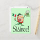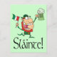 Esta Rua do Dia de Patrick mostra um desenho animado de um homem irlandês carregando uma caneca de cerveja verde e acenando uma bandeira irlandesa e um brinde irlandês: Sláinte