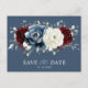 Slate, Borgonha, cartão postal de salva data temático de flores brancas marfim com um buquê elegante de flores borgonha, slate, rosas azuis empoeiradas, rosas e peônias marfim e folhas de eucalipto verde empoeiradas. Por favor, entre em contato comigo para qualquer ajuda na personalização ou se você precisar de qualquer outro produto