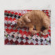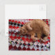 Cartão Postal Sleepy Ginger Kitty on a red quilt