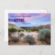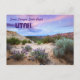 Este belo cartão postal do Snow Canyon mostra uma fotografia espantosa de um cenário de lua sobre flores silvestres Mohave Indigo no nascer do sol no Parque Estadual do Snow Canyon, perto da Rua George, Utah. Fotografia criada pela fotógrafa Maria Jeffs, prêmio vencedora.