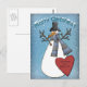 Cartão Postal Snowman engraçado com chapéu e cachecol